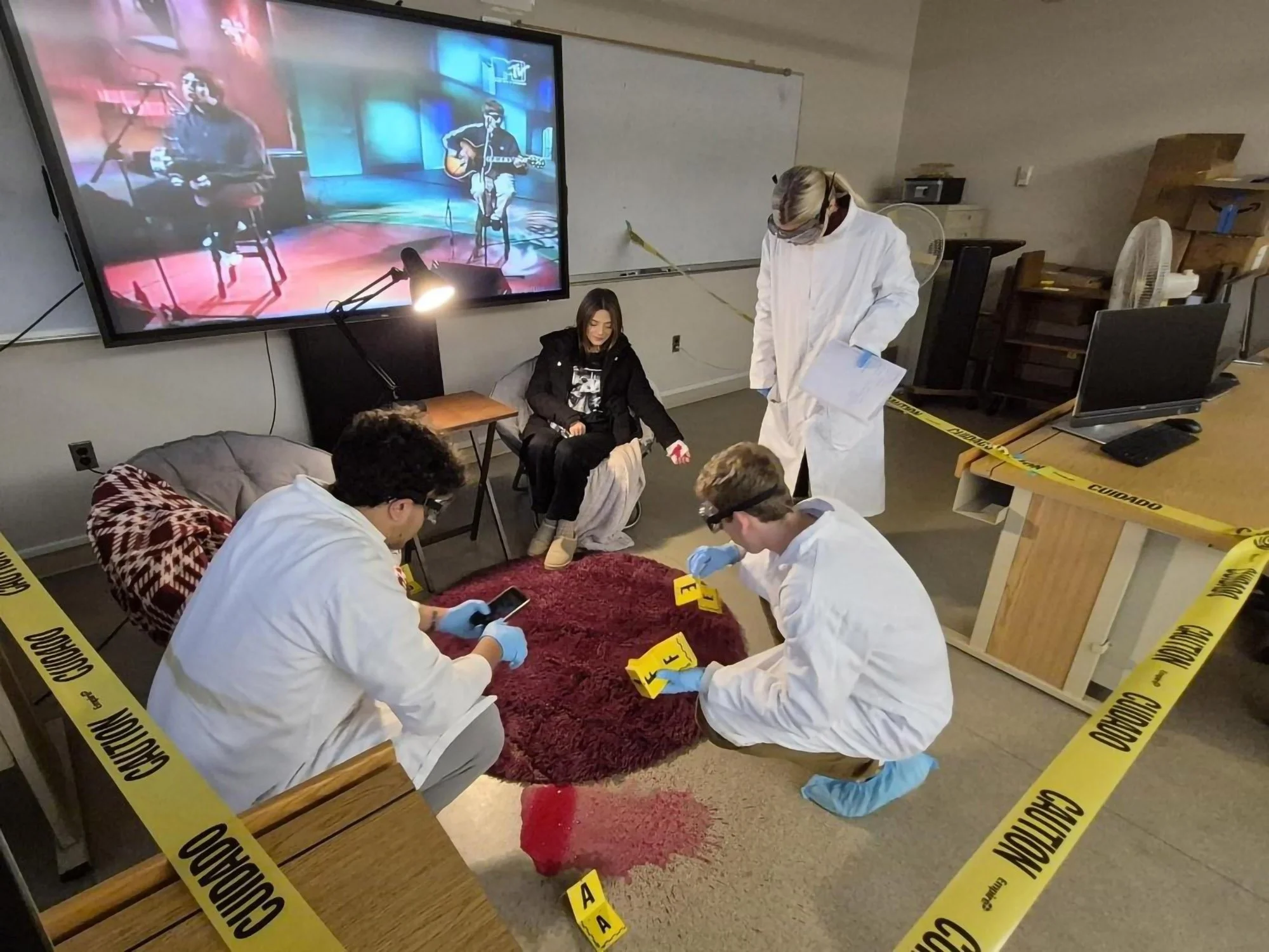 After the findings are gathered, the groups prepare a PowerPoint presentation summarizing their scene and evidence analysis, and provide a recommendation to a fictional prosecutor for a suspect to be apprehended. Student volunteers played witnesses. During the course, students learn the intricacies and characteristics of different samples they will come face-to-face with at crime scenes in the real world, such as hair and fiber, fingerprints and shoeprints, blood typing, and DNA, among other analytical techniques.