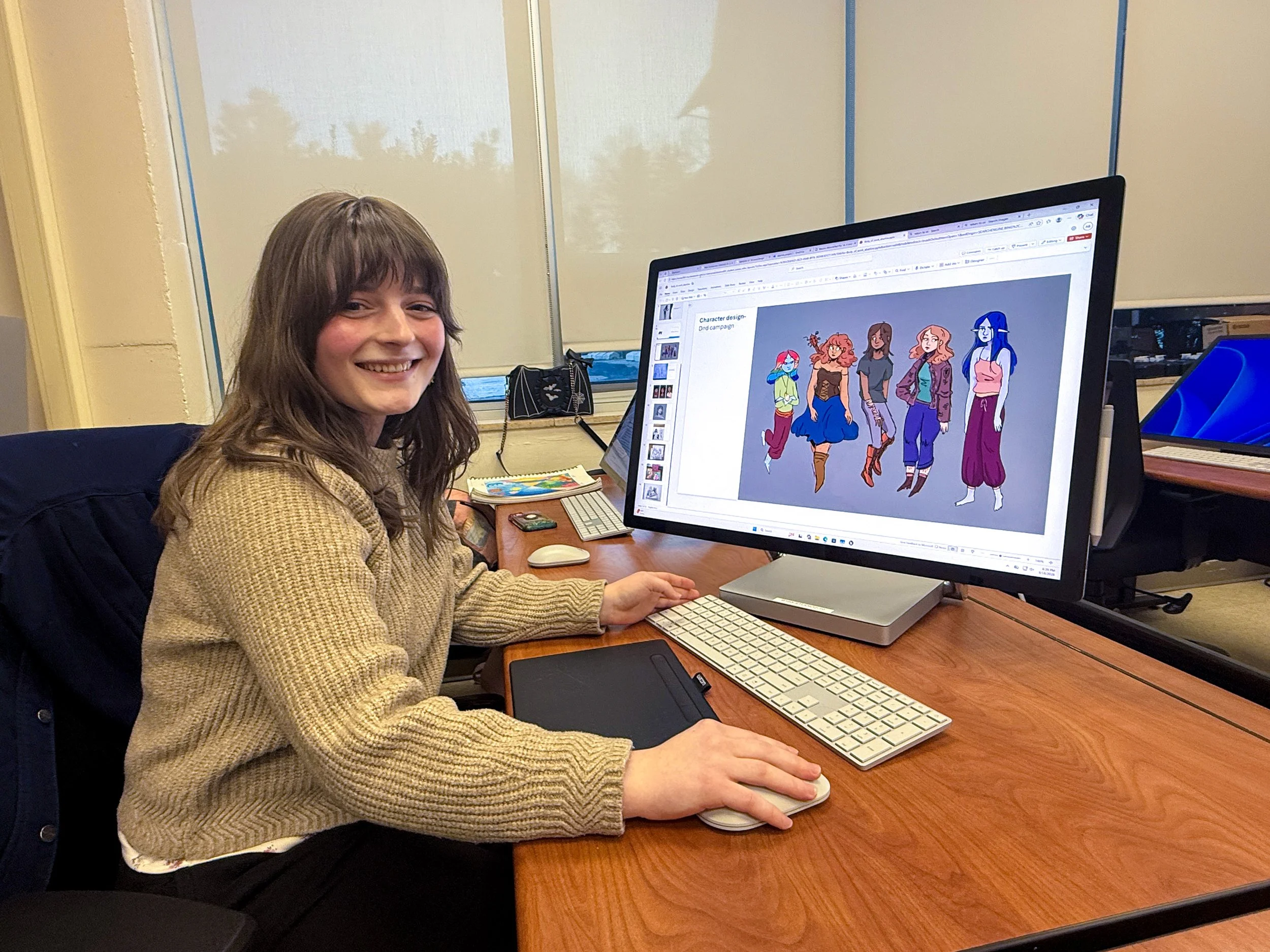 Growing up, I was homeschooled for most of middle school. This gave me the unique opportunity to explore many art forms, such as sculpture, textiles, painting, and creative writing. Because of this, I was able to find exactly what I loved the most, which is illustration and storytelling. Impactful stories are my world. Reading is my favorite pastime aside from creating art, and this helped cultivate my love of rousing stories. This led me to SCCC, where I started in the illustration degree. After a semester, I decided animation was something I wanted to dip my toes into. I will now graduate in May with an associate degree in 3d animation and art.